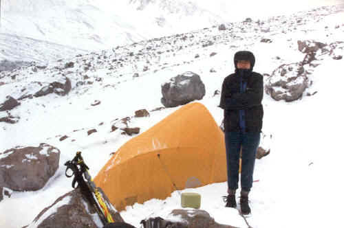 This is not what you want to see when you step out of your tent in the morning. The snow that is, not Jane Treasure - without whose sunny presence and tent-friendly cooking I would have undoubtedly frozen to death.
