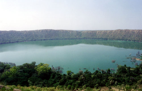 The lonar crater isn't quite the biggest visble meteor crater in world. That honor goes to the crater in Arizona. However, unlike its American counterpart, the Lonar crater doesn't have a bellicose foreign policy and enjoys good relations with high impact geological formations in both France and Germany. For more information see the lonar crater home page. Lonar Crater,India 2003 |