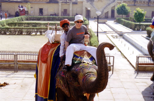 An elephant offers the same commanding driving position and safety features as an SUV. It is also emits far less pollution, is ublikely to roll over and kill you and seats six in some style and comfort. However, the Bush administration has slashed funding for research into an elephant-based transport system as the stupid creatures cannot be persuaded to drink oil. Rajastan, India 2002 |