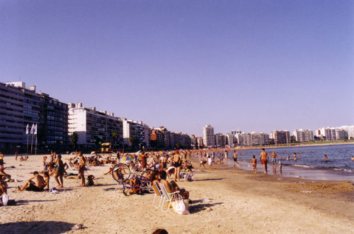 On a sunny beach in Montevideo, we felt as if we were in the Canary Islands. Though, somewhat disappointingly, nobody seemed to want a fight. Montevideo, Uraguay, 2003