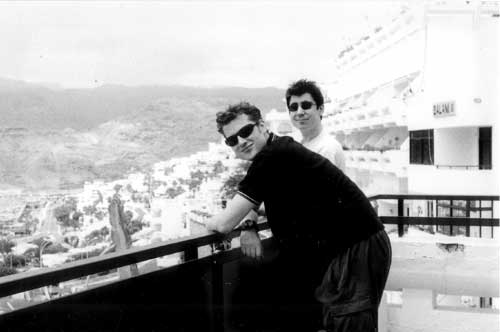 Dom and Ed admire the Canarian landscape from our balcony, little realising that a town