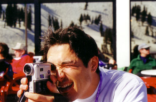 rather than videoing his fellow skiers, Matthew Low is using his Sony