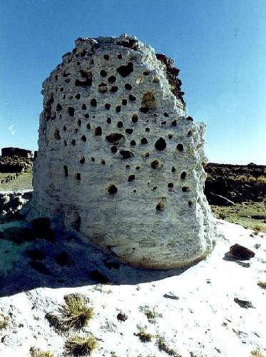 Another so called "funeral tower." Closer analysis revealed that this unusual structure is composed entirely of cocaine base and that this is, in fact, the earliest known example of a "crack house". |